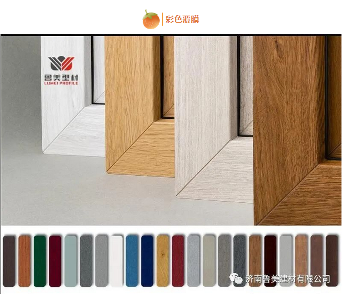 魯美彩色覆膜型材就是將彩色及各類仿真木紋樣式的薄膜在覆膜機(jī)組生產(chǎn)線上,經(jīng)過涂膠和加熱,通過壓合將特制的彩色膜貼合在白色或其他顏色型材表面或兩側(cè),使塑鋼型材達(dá)到更好的彩色視覺效果。